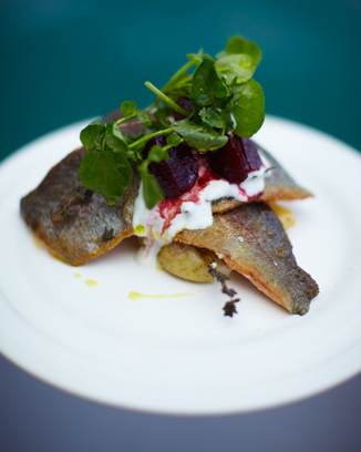 Добавить картофель в кастрюлю с подсоленной кипящей водой и варить около 15 минут, или до готовности. Положите большой сковороде на среднем огне. Сезон форели с обеих сторон с щепоткой соли и перца. Добавить хорошим наконечником оливковое масло в кастрюлю и разброс тимьяна советы, а затем форель, кожей вниз (возможно, вам придется делать это в 2 партии). Нажмите на рыбу с рыбой ломти